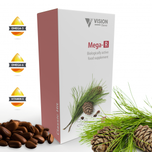 VISION preparat  Mega-R sadrži kompleks polinezasićenih masnih kiselina (PNMK), omega-3 (eikozapentaenska kiselina – EPA i dokozaheksaenska kiselina – DHA) i omega-6 (gama-linolensku kiselinu – GLA) koje su neophodne za normalan rad svih organa i sistema organizma, a pre svega za srce, krvne sudove, mozak i kožu.